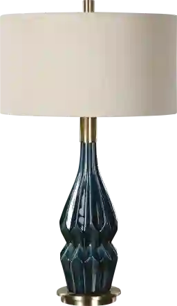 Ceramic is a premier material for tabletop lighting due to its significant weight and long-term durability. This base features a deep blue ceramic glaze that is fired in a kiln to create a hard, permanent finish that resists fading. Because of this traditional firing process, each lamp features slight, natural variations in the glaze, ensuring your piece has the unique, artisanal character of a one-of-a-kind treasure.