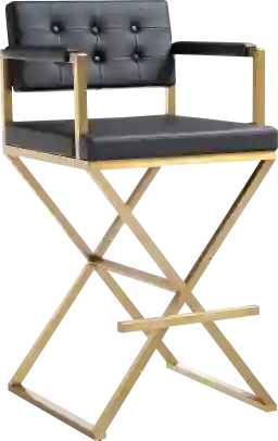 Furnish your kitchen or bar area in contemporary style with the Drela barstool. The gold solid stainless steel frame provides a sturdy base, while the plush extra deep seat and footrest ensure maximum comfort. The combination of angles and gentle curves gives this stool an eye-catching appearance, while the black upholstery allows it to match well with any decor. Customer assembly is required.