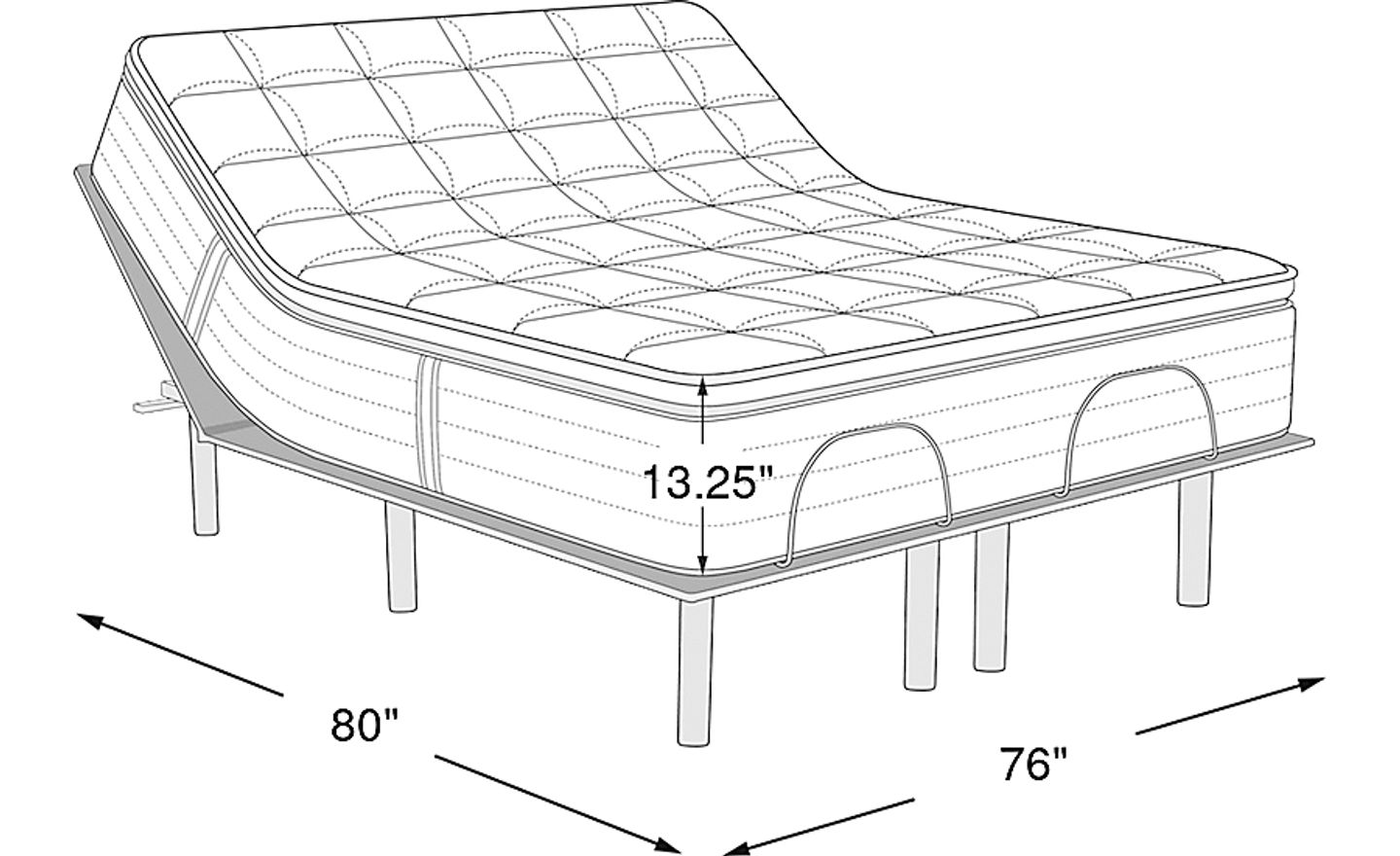 80"l x 76"w x 13.25"h; adjustable base: 4"h