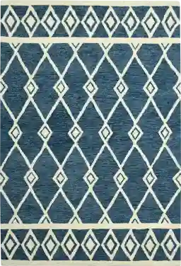 A geometric rug in navy and ivory serves as a sophisticated neutral anchor for a variety of styles. If your room features bold colors, the ivory tones help balance the space, while the navy pattern adds visual depth. For a curated look, our stylists suggest pulling the navy shade from the rug into your room's accents, such as throw pillows, vases, or wall art, to create a harmonious color story.
