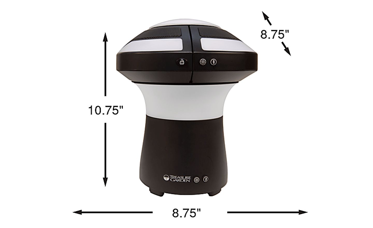 With compact dimensions of approximately 9" by 11", this pod is an exceptional choice for urban balconies and intimate patio decks. While portable enough to move around a large backyard, its dual-light surround-sound configuration is specifically optimized to fill a standard dining or conversation zone with crystal-clear audio and focused LED light.