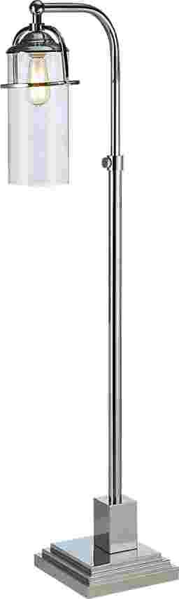 The simple, yet stunning, design of the Dryden Hall floor lamp adds plenty of visual interest to any room in your home. Finished with metal chrome and a glass shade. Some assembly required.