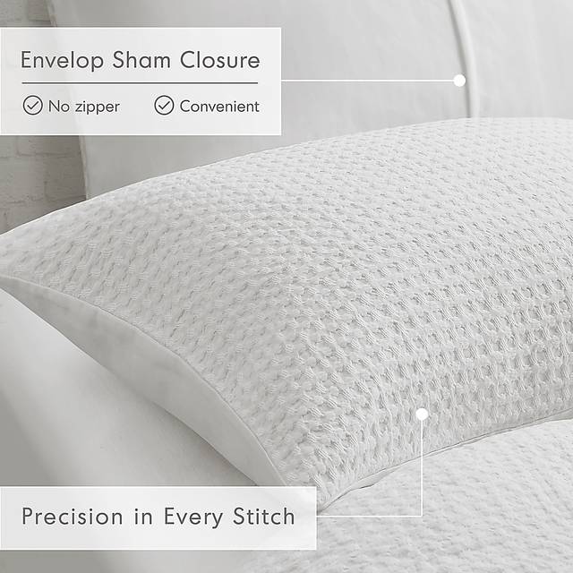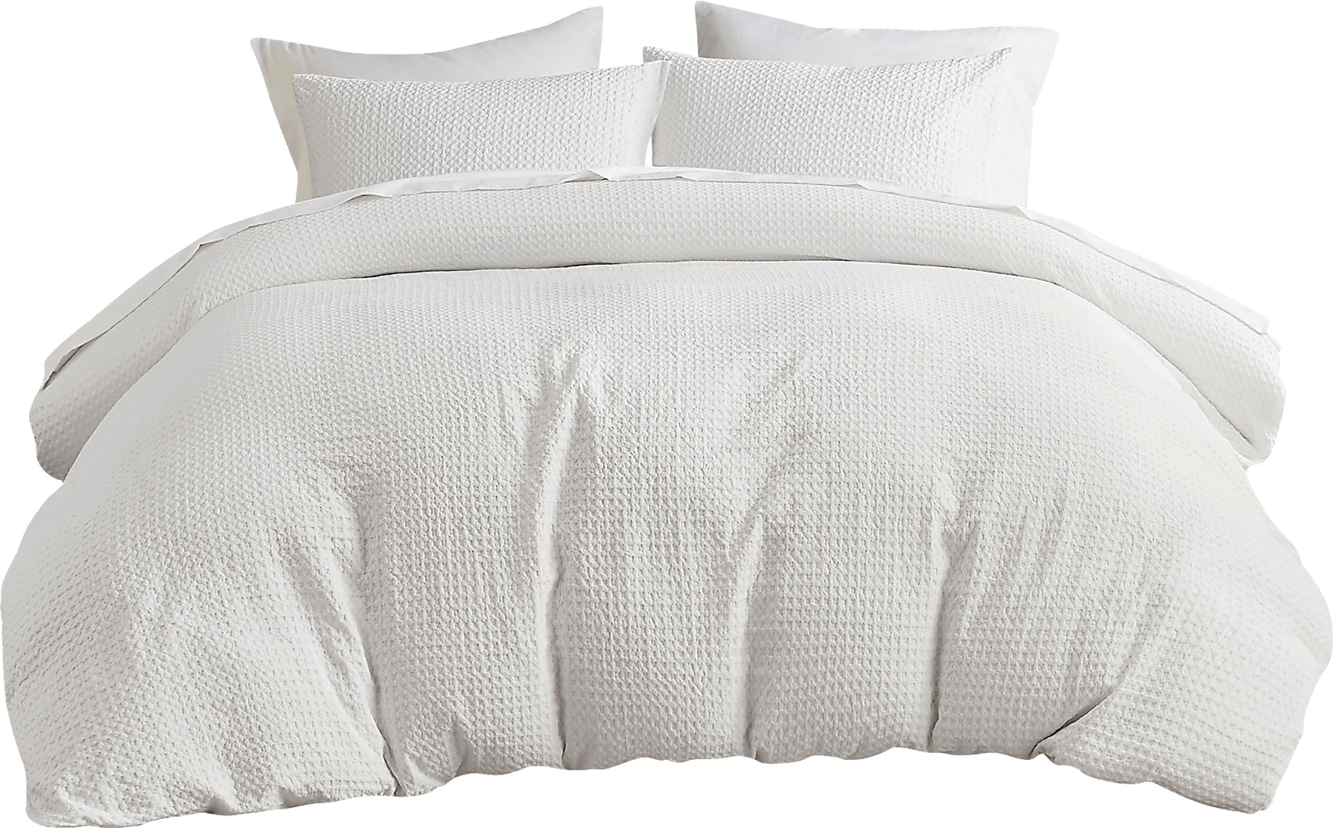 Embrace the Drysdalea white full/queen 3 Pc duvet set. Created from a soft and breathable material, it's suitable for all seasons. Providing needed warmth in the winter and comfort during summer and spring, it's an ideal gift to show you care. This duvet is machine washable and resistant to fading, shrinking, and seam issues, ensuring your bedding's longevity. This set includes 1 full/queen duvet cover and 2 matching shams in twin/twin XL. Features a solid color classic waffle weave that provides a distinct visual appeal and texture. Crafted from a premium polyester microfiber fabric known for its softness and durability. Designed with 4 inside corner ties and a button closure to keep the duvet insert, not included, secure, preventing any bunching or shifting. Uses an overlapping sham enclosure to keep the pillows securely in place. Machine washable, just follow the care label instructions for easy maintenance. Items may come in compressed packaging for efficient shipping and will need to be fluffed up and steam-ironed if compressed.