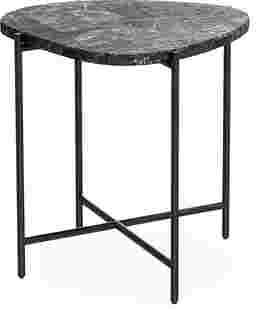 The bold contrast of the black stone and metal allows this table to act as a sophisticated focal point. It pairs beautifully with neutral-toned upholstery—such as light gray or cream—to create a modern, monochrome look. Our styling experts suggest layering the table with a few simple accents of varying heights, like a textured vase or a stack of books, to highlight its unique river-rock-inspired shape.