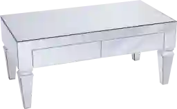 Your style shines with this oh so glam Dubay cocktail table. Shimmering mirrors span almost every surface, reflecting light across the contemporary, uninterrupted silhouette. Double drawer storage keeps your living room tidy, spacious mirrored tabletop shows off coffee table conversation starters. Fall in love with a sophisticated take on the mirrored look with this elegant rectangular cocktail table in your den, family room, or gathering space. Customer assembly required.