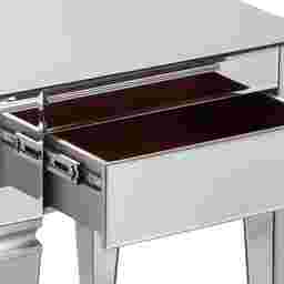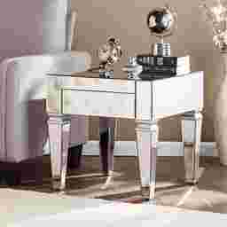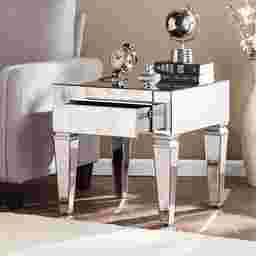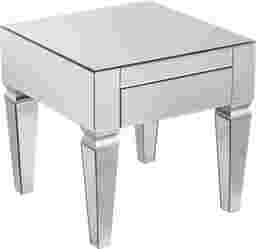 Gaze into a shimmering pool of glam with this mirrored Dubay end table. Sleek looking glass reflects from every angle, shining the spotlight on sophisticated style. Felt-lined drawer tidies clutter, while clean, square silhouette hints at contemporary inspirations. Step up your elegance level with this chic accent table in the living room, reading nook, or den. Customer assembly required.