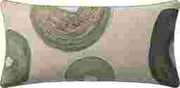 With a pop of organic texture and color, the Dublin accent pillow offers up embroidered semicircles in a rich emerald green against a soothing beige background. This naturally inspired accent measures 12" x 27", an elongated size to style in living rooms and bedrooms.