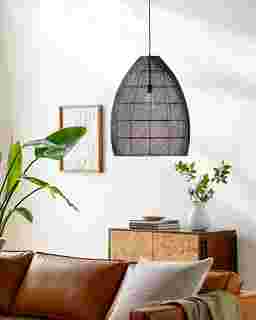 To preserve the intricate weave and the black finish of the shade, our care guidelines suggest regular dusting with a soft, dry cloth or a feather duster. For deeper cleaning within the textures, a soft-bristled brush attachment on a vacuum can be used gently. Always avoid harsh chemical cleaners or excessive moisture, which can damage natural rattan fibers.
