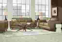Casually sophisticated design features with a vintage feel give the Duluth living room a refined aesthetic with warm, hospitable charm. Contemporary in style and upholstered in top grain leather where the body touches, the solid wood base and tall tapered legs accentuate the leather's vivid texture. Stylish track arms and welded stitching along the frame and cushions embolden the distinguished look while the loose seat and back cushions allow for easy maintenance and adjustment. Top grain leather where the body touches. Split grain leather on sides & back. Leather is a durable, low maintenance product; however, general regular maintenance is necessary. To keep your leather clean, vacuum it regularly, removing any dust, and clean it with water and a mild non-detergent soap.