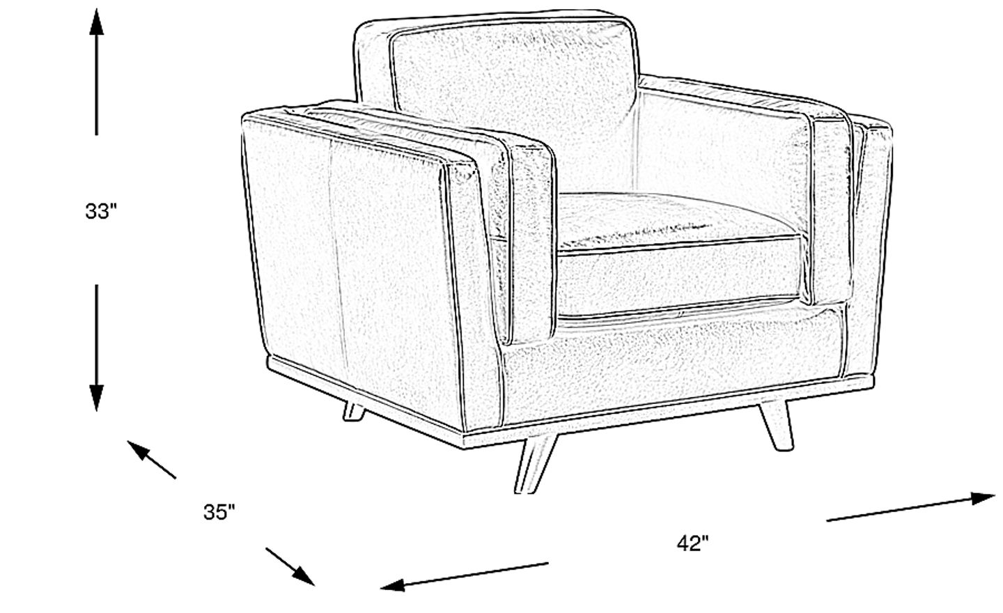 With a width of 42 inches, this chair is designed as a "chair and a half," offering a more generous and comfortable seating area than a standard accent chair. Its scale makes it an ideal anchor for a cozy reading nook or a sophisticated addition to a larger contemporary seating arrangement. The tall, tapered legs and sleek track arms provide a "floated" look that keeps the room feeling open and airy despite the chair's spacious dimensions.