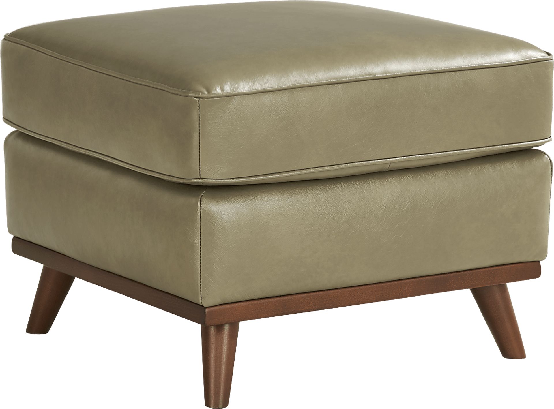 Casually sophisticated design features with a vintage feel give the Duluth ottoman a refined aesthetic and warm, hospitable charm. Contemporary in style and upholstered in olive-colored top grain leather where the body touches, the solid wood base and tall tapered legs accentuate the leather's vivid texture. Stylish welted seams along the cushion embolden the distinguished look, creating an ideal footrest or extra seat. Upholstery: Top grain leather where the body touches and polyurethane fabric sides and backs. Leather is a durable, low maintenance product, however, general regular maintenance is necessary. To keep your leather clean, vacuum it regularly, removing any dust, and clean it with water and a mild non-detergent soap.