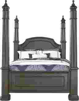 You'll dream in high style when you choose the Dumont poster bed. This outstanding bed is notable for its elaborately carved posts topped by striking finials and a rich cherry finish. Quality crafted with pine solids and mahogany veneers this is a gorgeous selection. Bed shown is queen size. Nightstand sold separately.