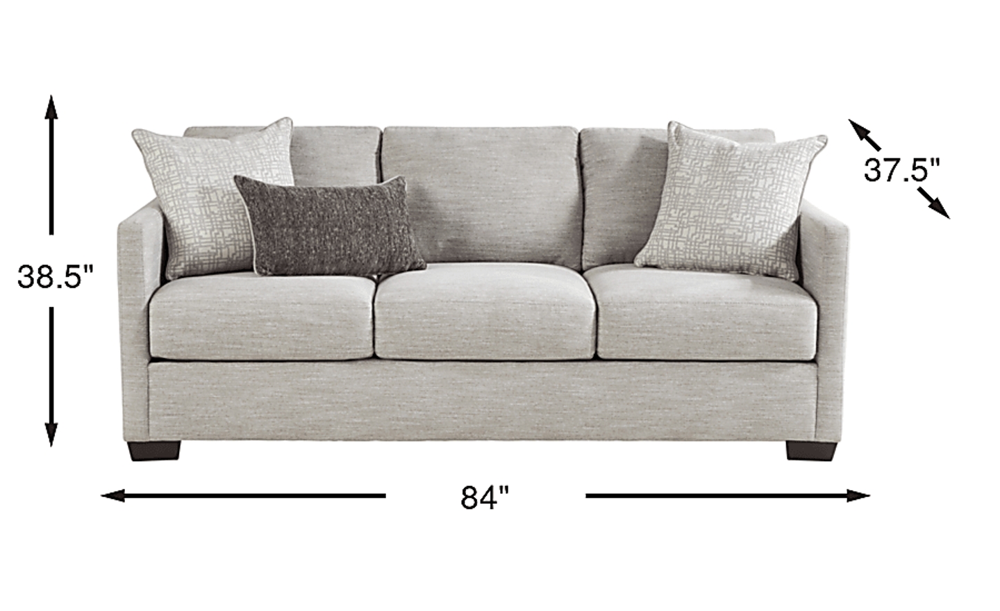 Contemporary and chic, the Dumont Place gel foam sleeper sofa creates the perfect centerpiece for your living room. Soft, woven upholstery in light gray features a textured look that captures your attention. Enhancing its modern appeal, slim track arms offer a sophisticated look. Reversible seat and back cushions extend the lifetime of your sofa, while accent pillows with a geometric print add visual interest. Tucked inside, a Nature's Bed queen mattress with premium gel foam offers a comfortable, convenient sleeping arrangement for your guests. 100% Polyester