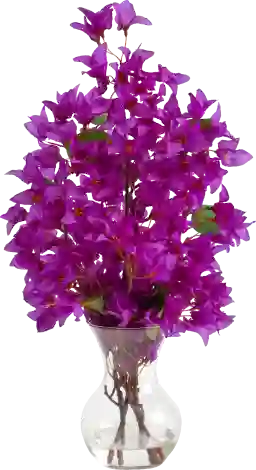 This arrangement is crafted to mimic the appearance of live botanicals through high-quality materials and thoughtful design. It features vibrant purple flowers contrasted by deep green leaves, all housed in a clear glass vase with "fake water." This solid resin detail provides the visual clarity and weight of a real water-filled vase, ensuring the piece looks professional and high-end rather than "tacky" in modern decor settings.