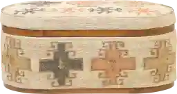 Add a textural touch to your living space with the Duskywing I multi storage ottoman. Featuring a tilting lid for convenient storage, this ottoman is wrapped in textured fabric and accentuated with elegant acacia trim. This ottoman is adorned with a large tribal pattern in beautiful earthy tones, while effortlessly enhancing any space with its rich, bohemian flair.