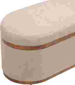 Add a textural touch to your living space with the Duskywing II ivory storage ottoman. Featuring a tilting lid for convenient storage, this ottoman is wrapped in textured fabric and accentuated with elegant acacia trim. This ottoman is adorned with boucle fabric and enhances any space.