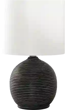 Brighten up your living room, bedroom, or office with the Dwarfoods Black Lamp with a beehive shaped, textured finish base in black resin and complimented with an ivory fabric shade. This lamp creates the perfect ambiance whether you place this chic accent piece on your end or side table, nightstand or bedside table. Easy to assemble, make a statement with this fashionable lighting piece that combines form and function seamlessly. Partial assembly may be required.