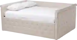 The Dyett queen size daybed is the epitome of laid back elegance. The bed's versatility comes from its modern and contemporary-inspired design. The Dyett can easily be coordinated with a wide range of decor, including coastal and glam styles. This daybed's engineered wood frame is foam padded and upholstered in light beige fabric. The Dyett features scrolled arms with a button-tufting design on each side panel, as well as the front panel of the bed. The daybed exudes a luxe, high end look while providing you a place to rest and relax in your bedroom or guest room. Customer assembly is required.