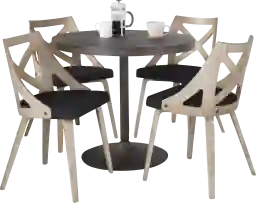 The Dyme I Charcoal 5 Pc Dining Set is perfect for any eating area. With a modern farmhouse inspired style, the simplicity of the Dyme table allows the backrest design of the chairs to really shine. This specially curated dining set is the beautiful seating solution to make life stylish and easy. Featuring a seating capacity of four, this dining set would be great for any dining room, kitchen, or breakroom. Customer assembly required.