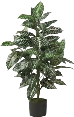 The Dynah Zebra plant is designed as an ornamental masterpiece, featuring large, deep green leaves embellished with a detailed white pin-striped design that mimics the natural beauty of a Brazilian zebra plant. Standing just over 3 feet tall, its lifelike color variations and textured appearance make it a sophisticated choice for those looking to add lush greenery without the maintenance of a live plant.