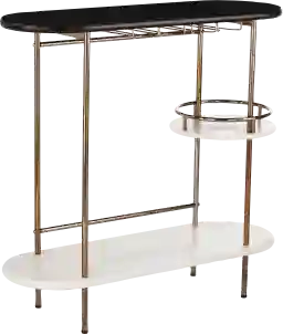 This cart features a robust metal frame with art deco-inspired metalwork, offering superior structural stability and resistance to the warping that can sometimes affect wood in humid climates. Metal frames are particularly durable for mobile furniture, providing a steady foundation for heavy glass bottles and ensuring the unit remains level and secure over time.