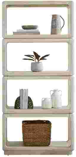 This bookcase is crafted with oak veneers over a balanced structure to provide a refined, organic feel. Oak is highly regarded for its natural strength and density. To maintain the structural integrity of the four shelves and prevent sagging over time, our experts recommend distributing weight evenly and placing heavier items, such as large binders or hardcovers, on the lower shelves.