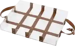 Combining clear acrylic and the brown hue of faux leather, this tray displays a unique grid-like strap pattern, leading to a pair of rounded handles. Offering versatility to your decor, this piece could be used as an organizational tool, to display other home accents or as a serving tray. Wipe clean as needed.