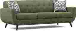 Featuring mid-century design with a bohemian touch, the East Side sofa is unforgettable. Upholstered with soft chenille fabric in avocado, this sofa features a distinct tailored style for a must-have retro look. An expansive tufted back and wood base with artfully angled legs in a brown finish add to the vintage appeal. Gorgeous accent pillows with a colorful geometric pattern included. 100% Polyester