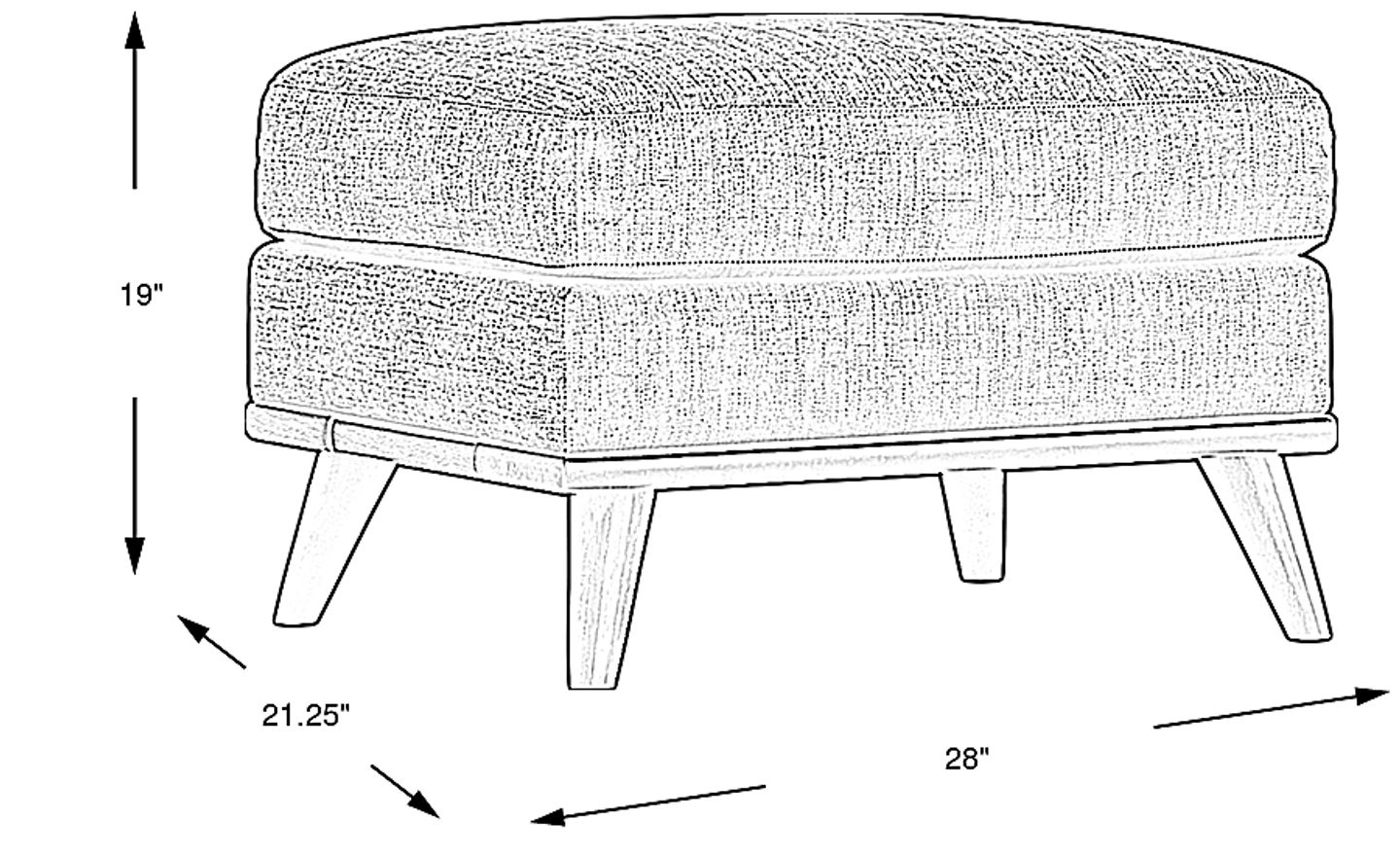 With a footprint of 28"W x 21.25"D, this ottoman is purposefully scaled to provide utility without overwhelming a room. Its mid-century modern design features tapered, angled legs which create an "open" look. This design choice allows light to pass through the space beneath the furniture, a professional staging technique used to make smaller apartments feel more airy and less cluttered.