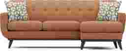 Featuring mid-century design with a bohemian touch, the East Side chaise sofa is unforgettable. Upholstered with soft chenille fabric in russet orange, this piece features a distinct tailored style for a must-have retro look. Its chaise sofa design provides room to recline, while an expansive tufted back and wood base with artfully angled legs in a brown finish add to the vintage appeal. The reversible chaise can be floated to either end of the sofa's frame by simply flipping its seat cushion. Gorgeous accent pillows with a colorful geometric pattern included. Upholstery: 100% Polyester