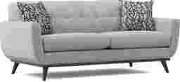 With a laid-back mid-century modern design, the East Side apartment sofa offers a refreshing update to your living room. Upholstered with soft chenille fabric in smoke, this piece features a distinct tailored style for a must-have retro look. Scaled for smaller spaces, a tufted back and wood base with artfully angled legs in a brown finish add to the vintage appeal. Contemporary accent pillows with a modified chevron pattern included. Upholstery: 100% Polyester