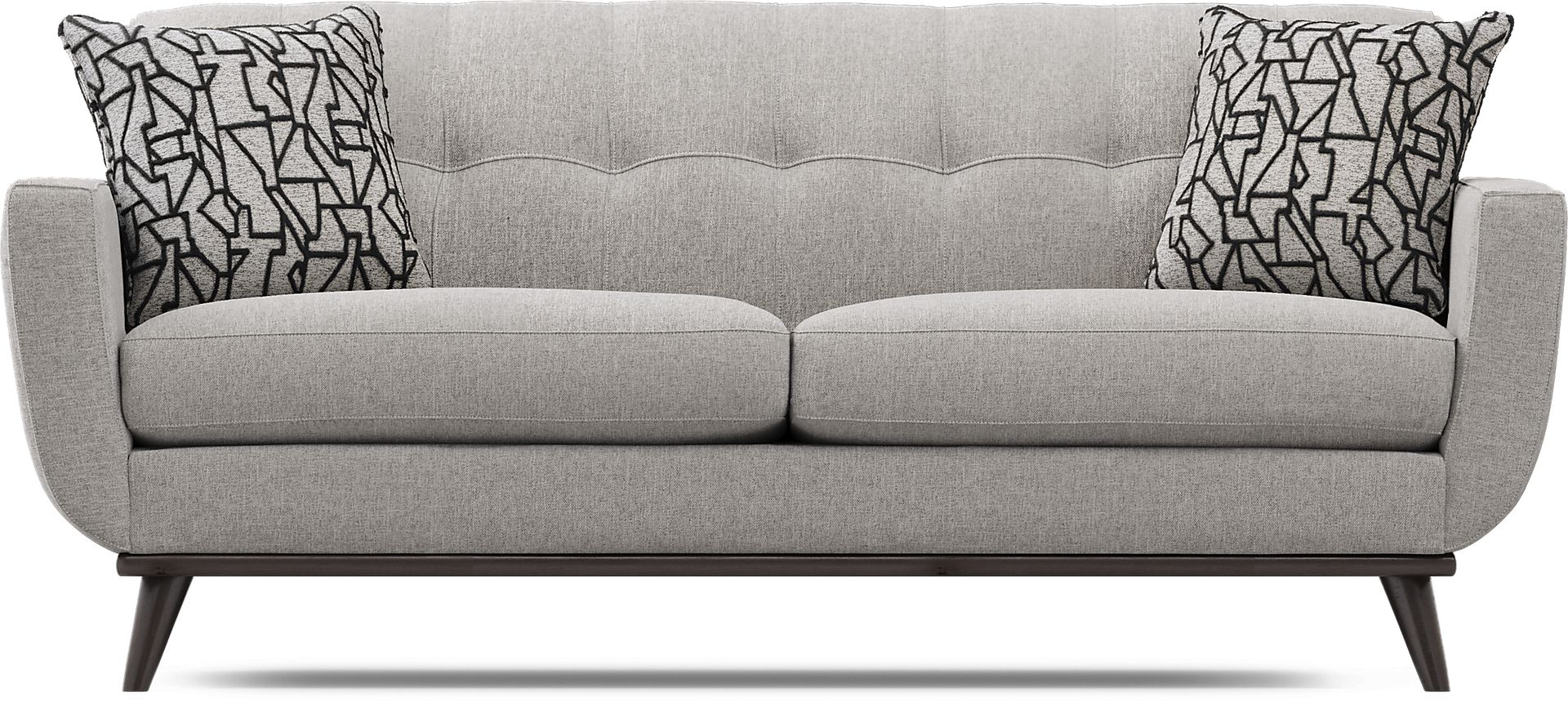 With a laid-back mid-century modern design, the East Side apartment sofa offers a refreshing update to your living room. Upholstered with soft chenille fabric in smoke, this piece features a distinct tailored style for a must-have retro look. Scaled for smaller spaces, a tufted back and wood base with artfully angled legs in a brown finish add to the vintage appeal. Contemporary accent pillows with a modified chevron pattern included. Upholstery: 100% Polyester