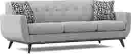 Featuring mid-century design with a bohemian touch, the East Side sofa is unforgettable. Upholstered with soft chenille fabric in smoke, this sofa features a distinct tailored style for a must-have retro look. An expansive tufted back and wood base with artfully angled legs in a brown finish add to the vintage appeal. Contemporary accent pillows with a modified chevron pattern included. Upholstery: 100% Polyester