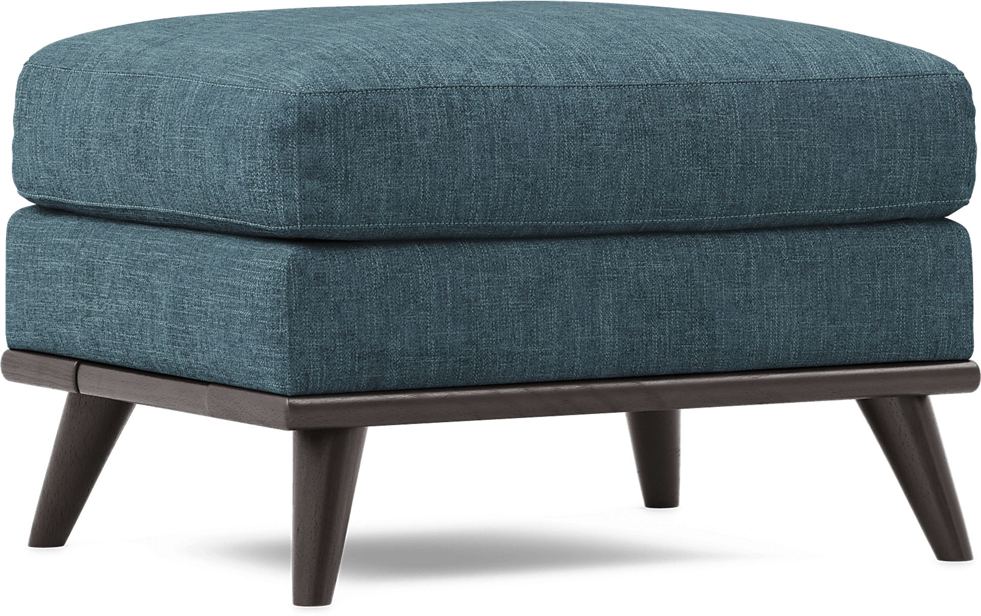 Offering a vintage contemporary design, the East Side ottoman is a valuable addition to your living room arrangement. Upholstered with soft chenille fabric in teal, this ottoman welcomes your weary feet. With angled legs in a classy brown finish, the details of the piece give it a high-end look. 100% Polyester