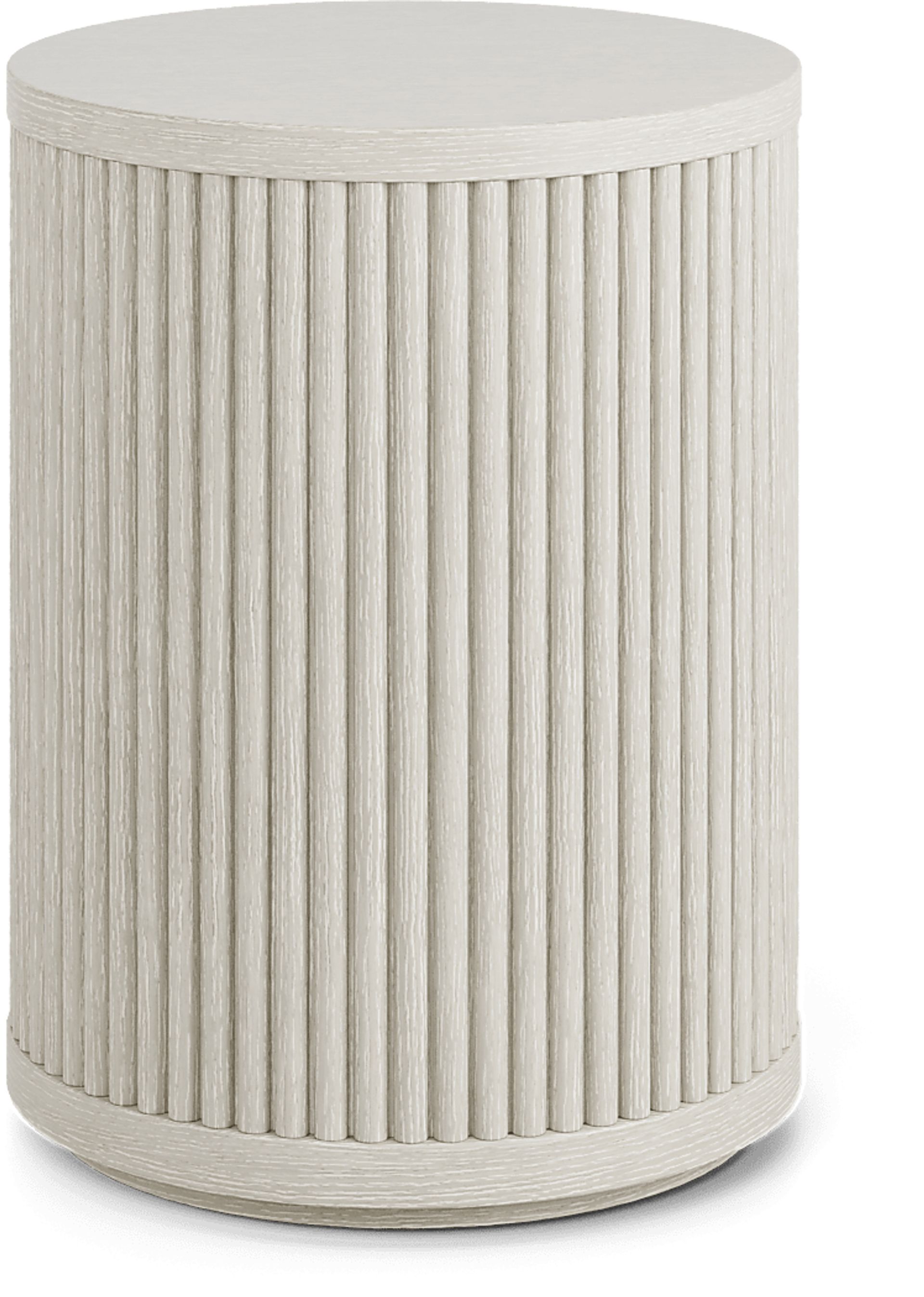 Whether displaying classic literature, a warm cup of tea or a frame that holds a cherished memory, the Eastchester chairside table welcomes it all with understated confidence and sculptural grace. Contemporary in style, this piece is crafted of cherry veneers in a stone white finish and features a sleek square frame and confident silhouette. Two open shelves provide ample display space and showcase a subtly curved ribbed interior that adds dimension and visual interest. The plinth base grounds the look with a refined touch while complementing the structured form of the table.