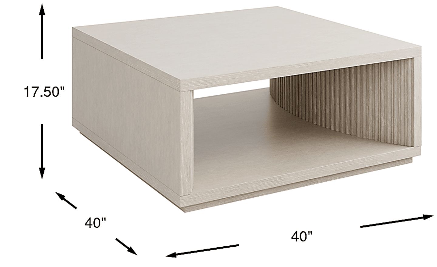 Whether displaying classic literature, a warm cup of tea or a frame that holds a cherished memory, the Eastchester cocktail table welcomes it all with understated confidence and sculptural grace. Contemporary in style, this piece is crafted of cherry veneers in a stone white finish and features a sleek square frame and confident silhouette. An open bottom shelf provides ample display space and showcases a subtly curved ribbed interior that adds dimension and visual interest. The plinth base grounds the look with a refined touch while complementing the structured form of the table.