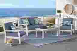 Eastlake White 4 Pc Outdoor Loveseat Seating Set With Blueberry Cushions