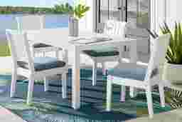 Eastlake White 5 Pc 71 In. Rectangle Outdoor Dining Set With Agean Cushions