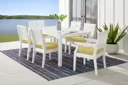 Eastlake White 7 Pc 71 In. Rectangle Outdoor Dining Set With Buttercup Cushions