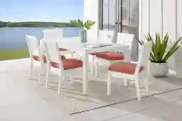 Eastlake White 7 Pc 71 In. Rectangle Outdoor Dining Set With Persimmon Cushions