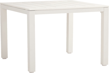 Enhance your outdoor dining experience with the charming Eastlake table. Crafted from highly durable outdoor materials in a white finish for easy enjoyment for years to come, this outdoor table is the perfect addition to your patio. An umbrella hole in the center can be capped when not in use.