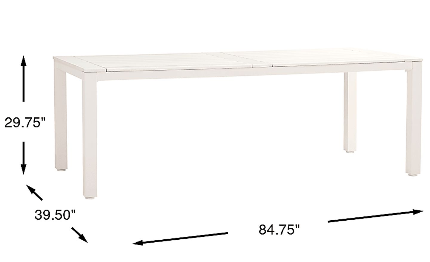 With a width of nearly 85 inches (84.75"), this large-format table is designed for families and social gatherings. Based on standard spatial recommendations for outdoor dining, it comfortably accommodates 6 to 8 guests, providing ample surface area for full table settings and serving platters without feeling crowded.