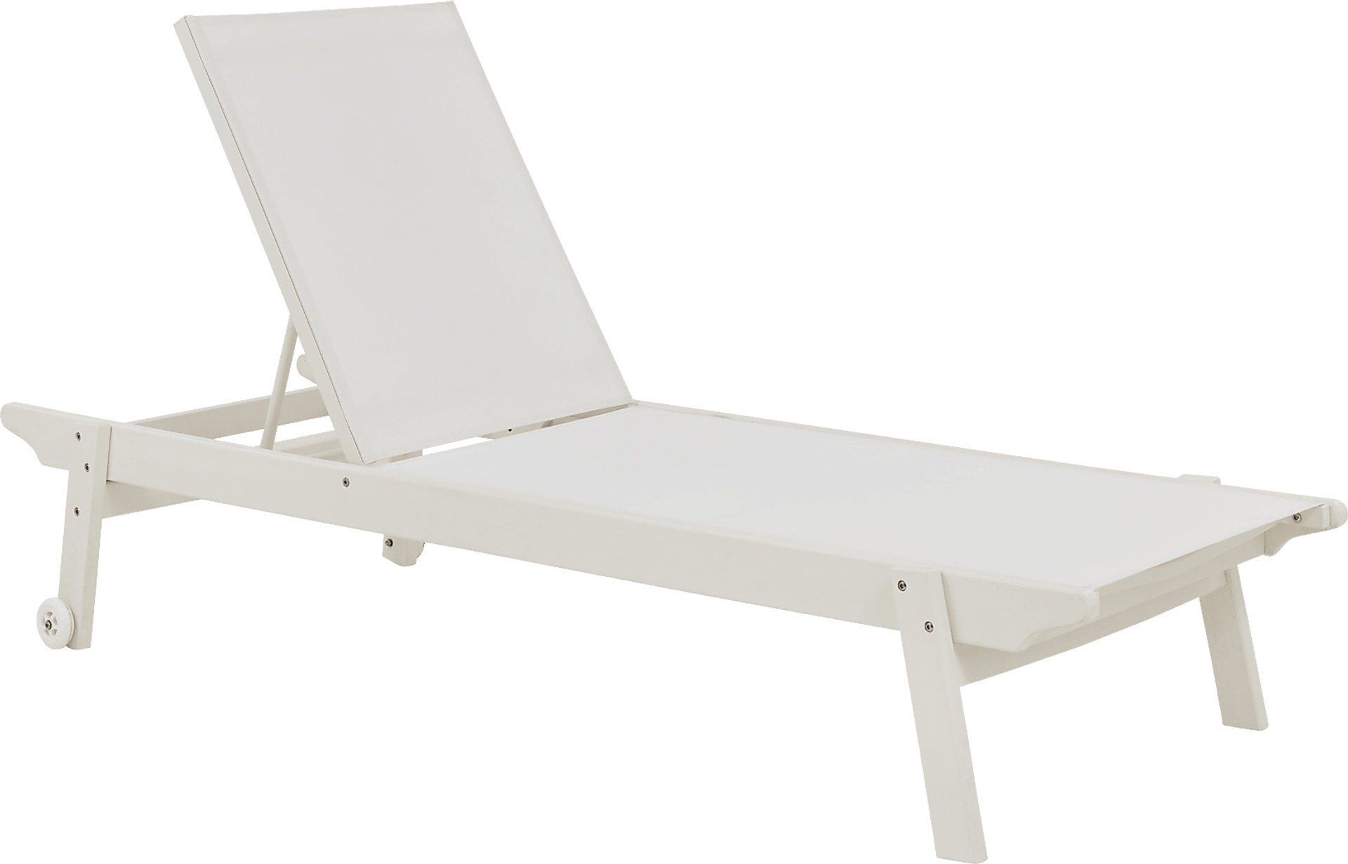 Enhance your outdoor seating accommodations with the modern Eastlake chaise. Crafted from highly durable materials, this armless chaise features a white sling seat. Back wheels offer easy movement anywhere: patio, poolside or otherwise. The vibrant and versatile white finish makes styling and accenting easy with outdoor accent pillows, towels and more.