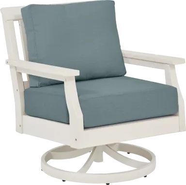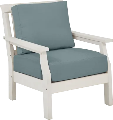 Yes, this chair is a definitive choice for coastal-inspired designs. Its crisp white finish provides a clean, timeless look that brightens up any deck or patio, while the slat-back and track-arm silhouette offer a modern, architectural feel. The blue-green cushions provide a subtle, ocean-inspired pop of color that pairs beautifully with nautical decor, outdoor rugs, and greenery.