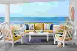 The Eastlake cocktail table is crafted from highly durable, outdoor-grade materials engineered for multi-season longevity. Its white finish is specifically formulated to resist the wear and tear of varying weather conditions. For those in humid or rainy climates, the slatted top is a strategic design feature that prevents water from pooling, reducing the risk of water spots and moisture damage.