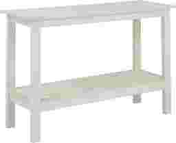 Enhance your patio with the charming Eastlake sofa table. Crafted from highly durable materials in a white finish for easy enjoyment for years to come, this 2-shelf table is the perfect addition for organizing and decorating your patio.