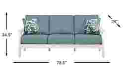 Enhance your patio's seating accommodations with the charming Eastlake sofa. Crafted from highly durable materials, this modern outdoor sofa features a slat back and clean lines for a classic silhouette in a versatile white finish. Breezy blue-green seat cushions provide ample comfort while a pair of included accent pillows compliment the contemporary style profile.