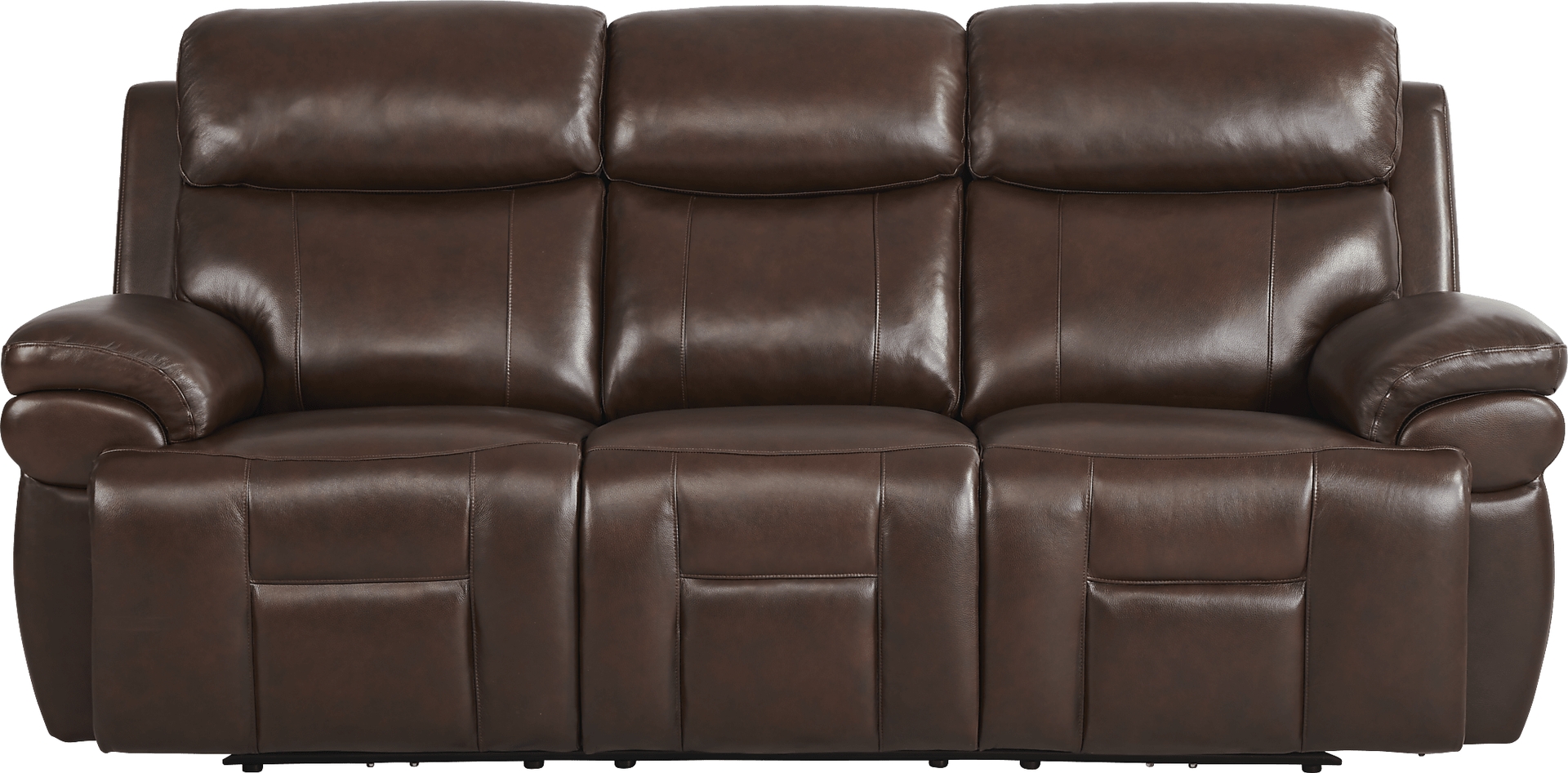 Designed with luxury in mind, the Eastmann reclining sofa brings the gift of comfort to your home. Upholstered in chocolate-colored top grain leather where the body touches, this sofa offers a cushiony feel you're bound to love. Plush pillowtop arms and padded chaise footrests make this piece an ideal spot for watching television or curling up with a good book. For ultimate relaxation, its triple power reclining function gives you the ability to adjust your headrests, footrests and lumbar supports at the touch of a button. Heated seating, air massage and zero gravity capabilities enhance your comfort. Fitting perfectly in the side pocket, the handheld remote includes a built-in USB port to conveniently charge your devices. Upholstery: Top grain leather where the body touches with vinyl sides and back.
