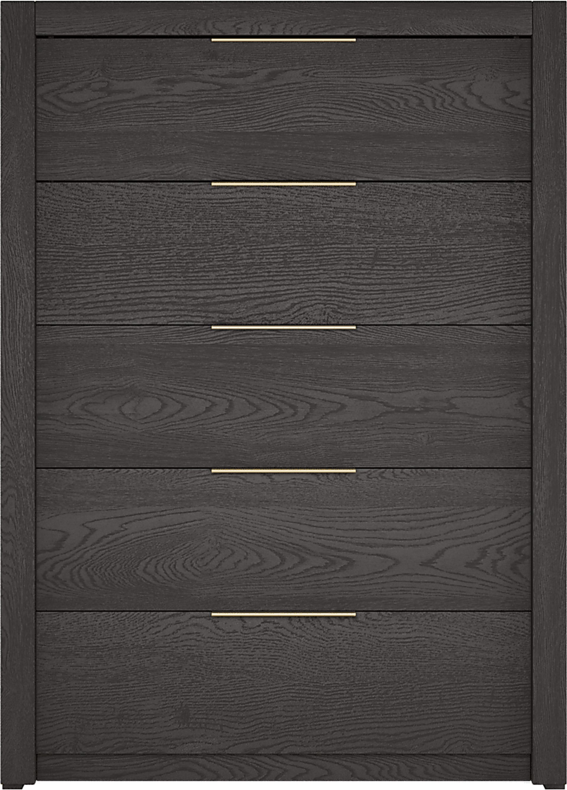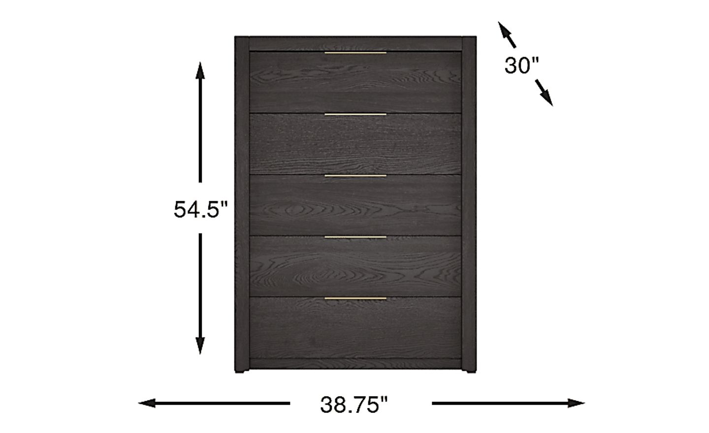Bringing a soothing ambiance with a touch of understated sophistication, the Easton Park chest's organic charm evokes tranquility and relaxation. Showcasing an espresso finish, this contemporary piece's five drawers are highlighted by chic gold bar pulls and include French dovetail construction, dustproof bottoms and full extension glides for support and longevity.