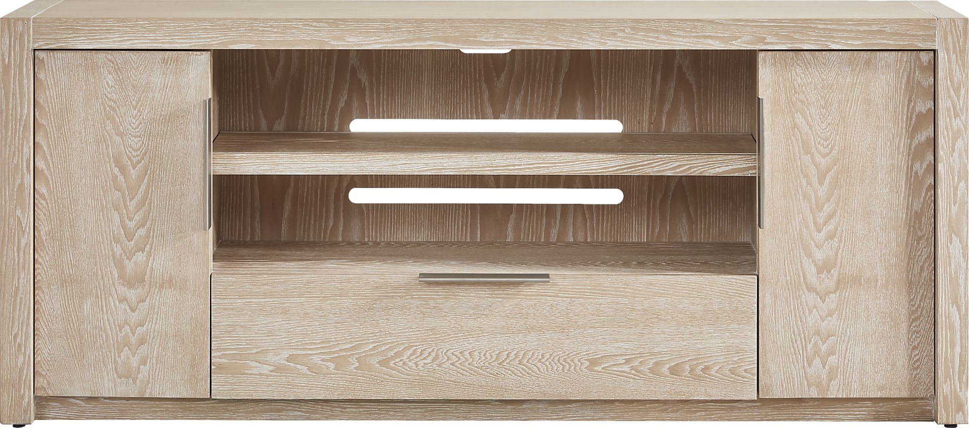 To help maintain a clean and organized contemporary look, this console is equipped with integrated cable management holes in the back panel. This design allows you to route wires and cords for gaming systems, soundbars, and media players directly to your power source, keeping unsightly clutter hidden from view behind the cabinets.